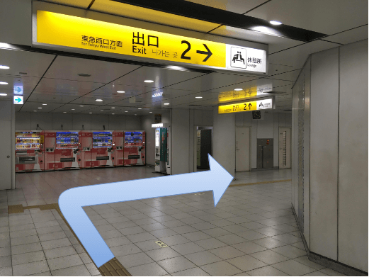 ①改札を出ましたら、東急線への改札を右手に見ながら左側の通路を進みます。